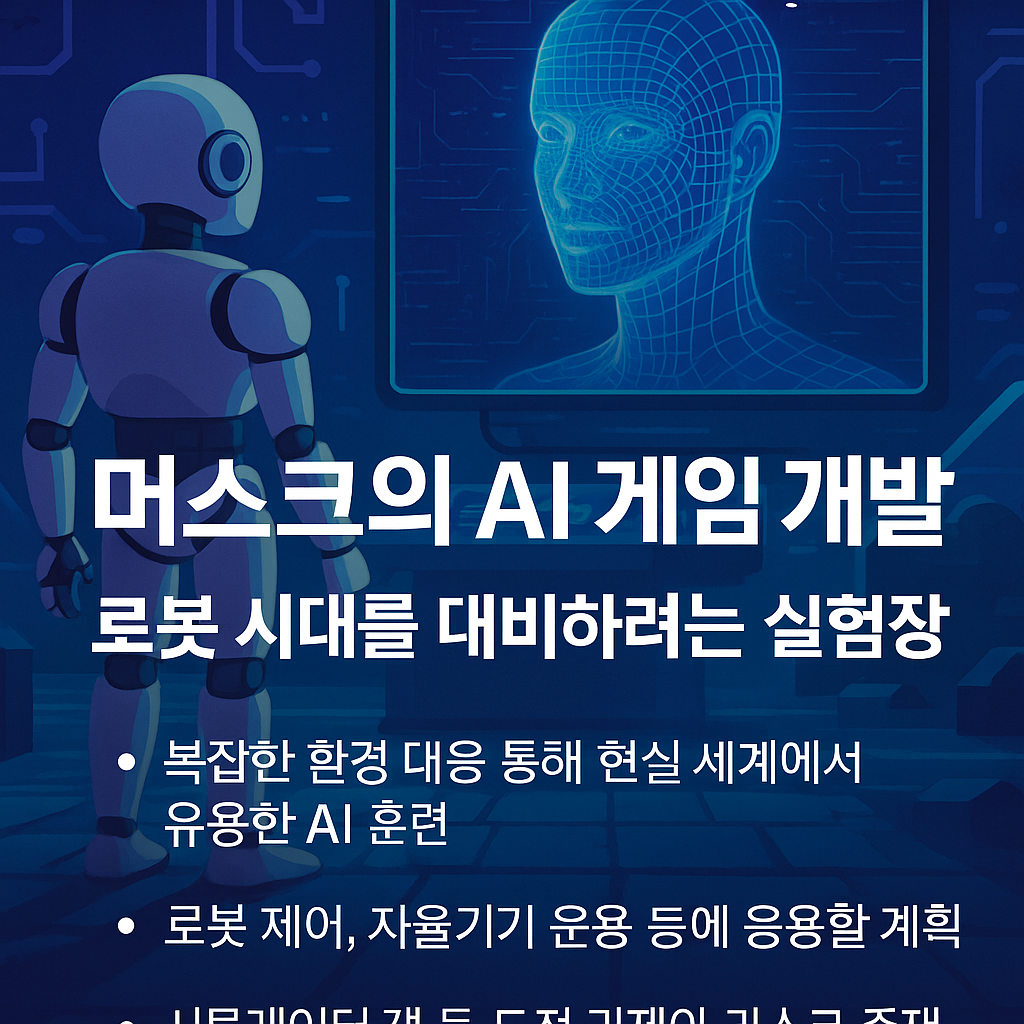 일론 머스크가 AI와 게임을 결합한 프로젝트에 뛰어든 것은 단순한 엔터테인먼트 목적이 아니라, 로봇 시대를 대비한 인공지능 실험장으로 활용하기 위함이다.