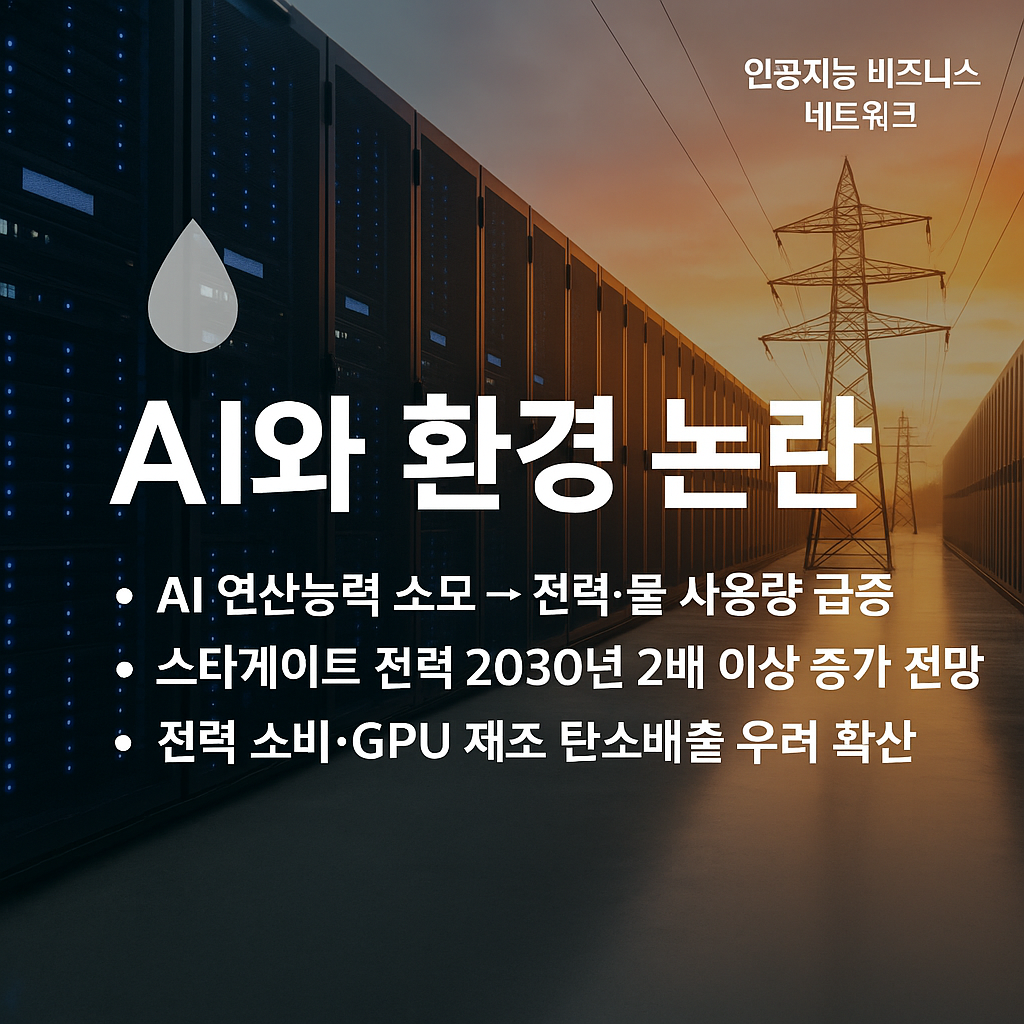 - 막대한 연산 능력 요구 → 전력 및 물 소비량 급증