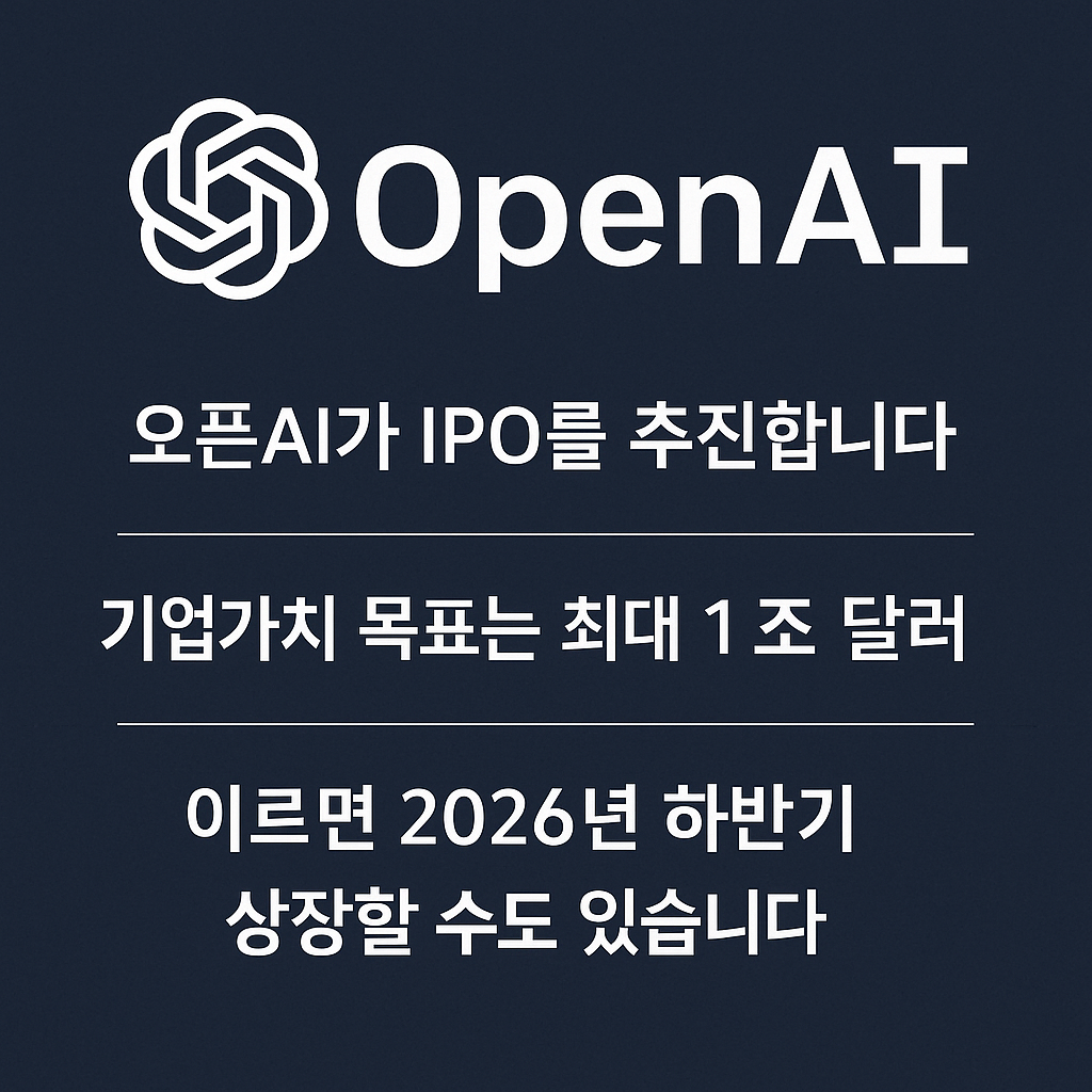 [1]: https://www.fntoday.co.kr/news/articleView.html?idxno=367118 "“시가총액 1조 달러 목표”…오픈AI, 대형 IPO 준비 공식화"