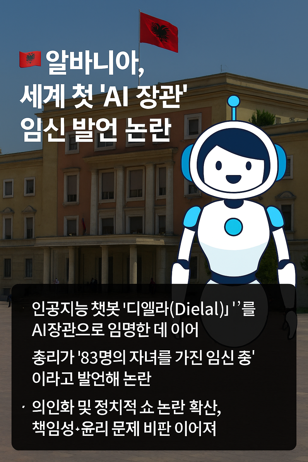 알바니아가 인공지능 챗봇 ‘디엘라(Diella)’를 국가 AI장관으로 임명한 데 이어, 총리가 “83명의 자녀를 가진 임신 중”이라고 발언해 논란이 일었다.
