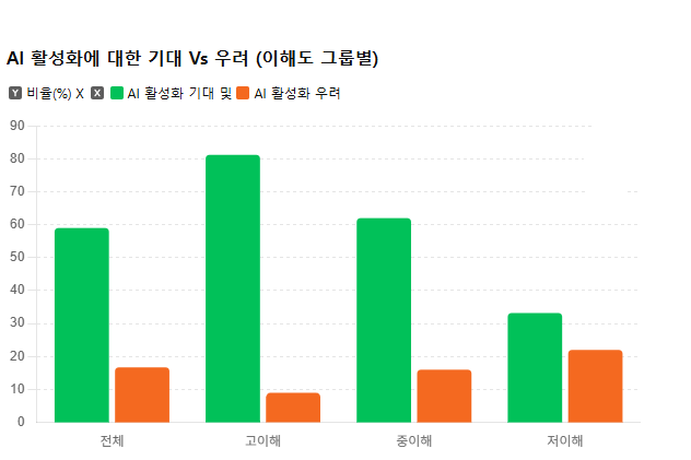 • → 즉, AI에 대한 이해도가 높을수록 활성화에 대한 기대감이 훨씬 크다는 결론.