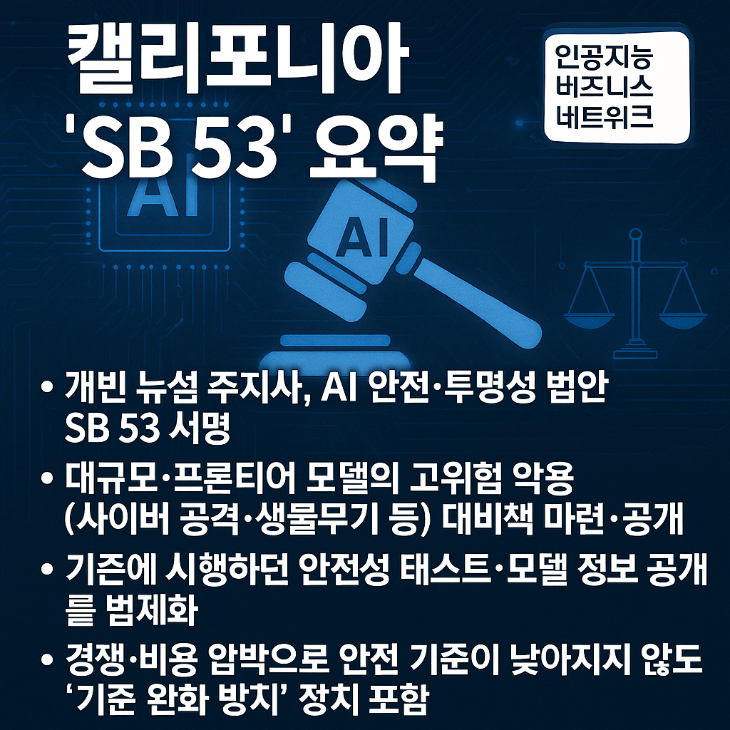 美 캘리포니아, AI 안전법 'SB 53' 도입…"혁신·투명성 다 잡아"