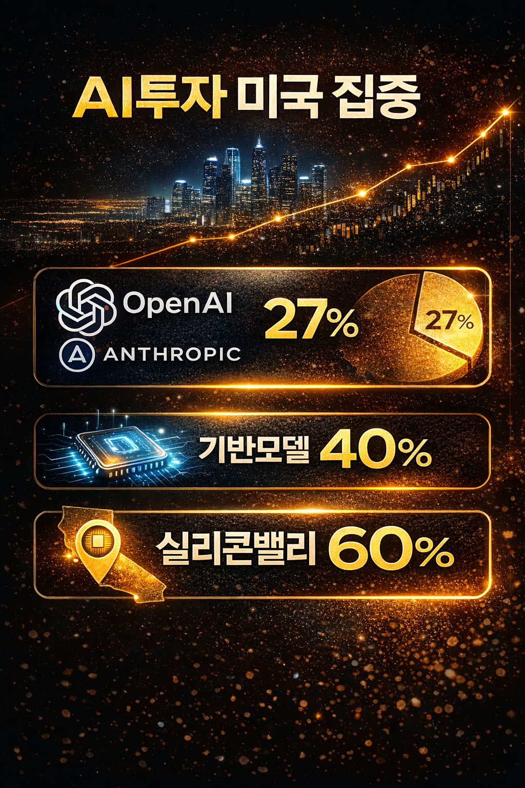 [5]: https://supple.kr/news/cml2vouva0032kvp1d03dcjd8 "AI투자 美실리콘밸리 60% 집중...오픈AI와 앤트로픽 585억달러 ..."