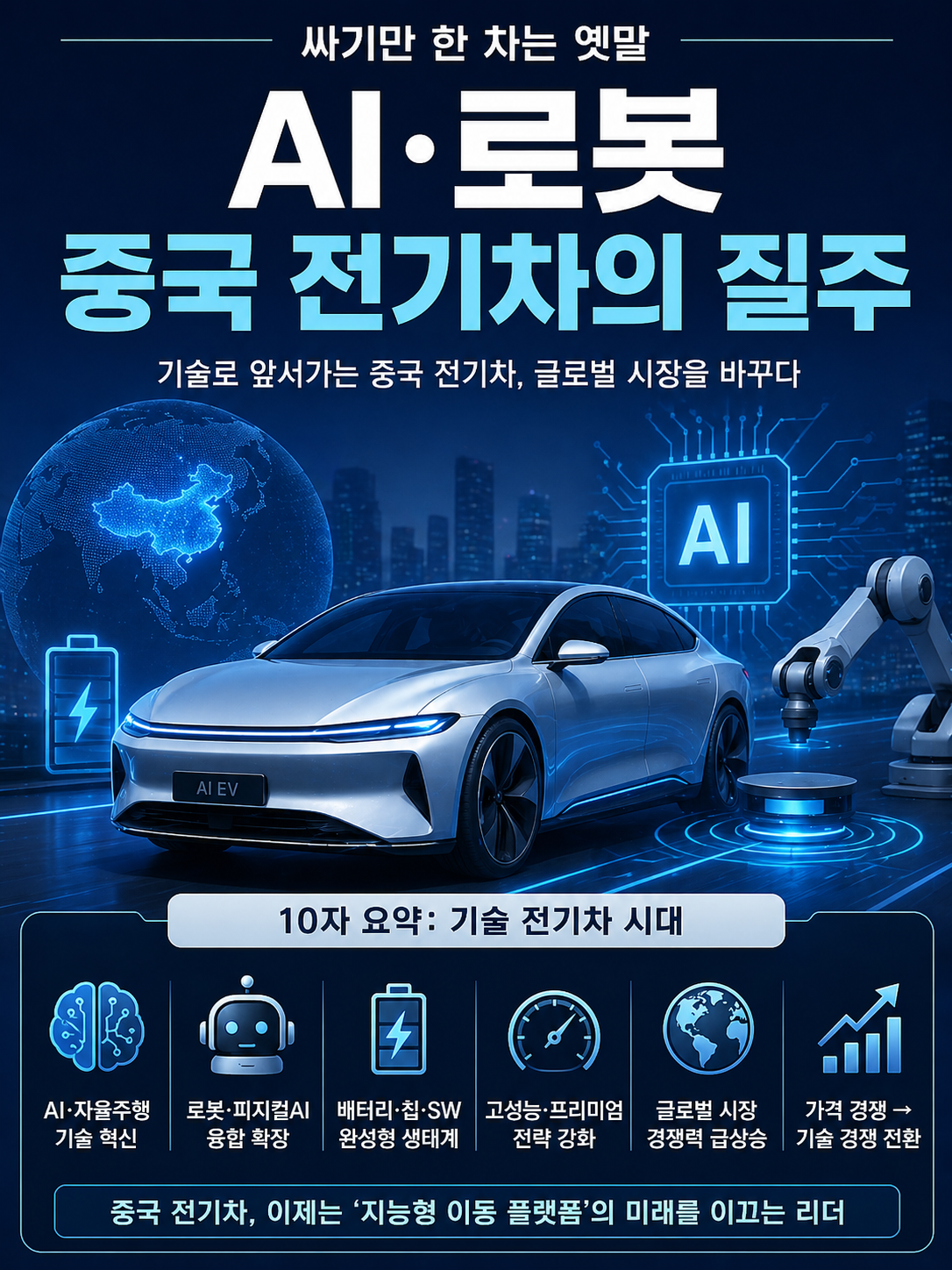 중국 전기차 산업은 저가 경쟁을 넘어 AI와 자율주행, 로봇 기술이 결합된 지능형 플랫폼으로 빠르게 진화하고 있습니다.