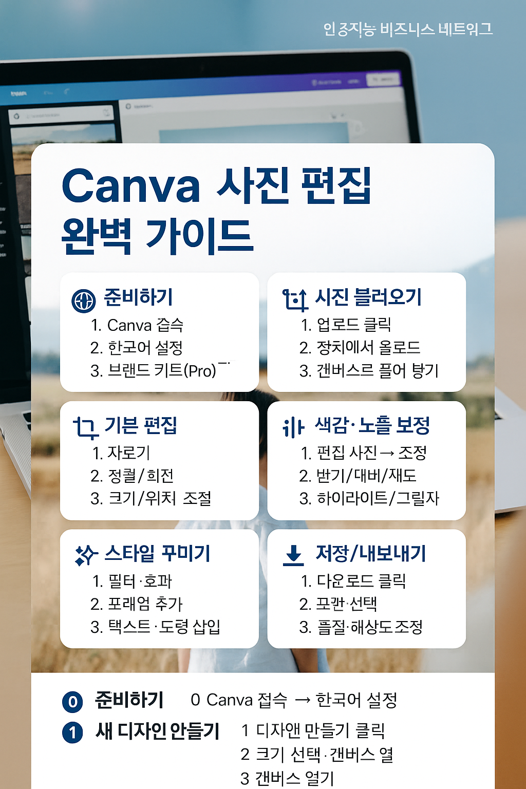 • 사진이 흐려요 → 더 큰 원본 사용, 선명함을 과하게 올리면 노이즈↑