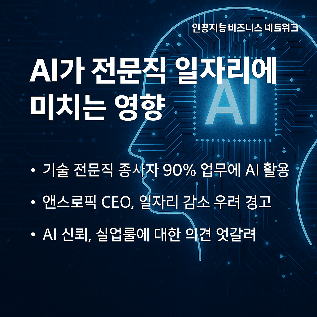 이 조사는 AI 기술 발전이 전문직 일자리에 미치는 실질적 영향을 보여주며, 특히 기술 분야에서 AI 도입이 급속히 확산되고 있음을 시사합니다.